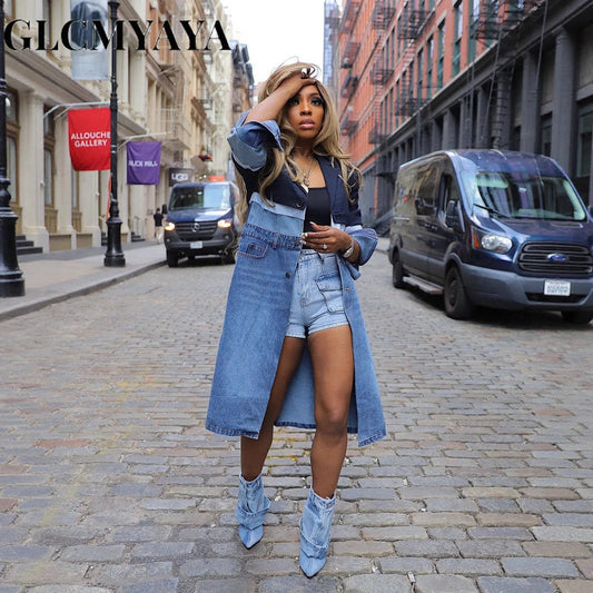 Demi Denim Patchwork Long Sleeve Trench Coat
