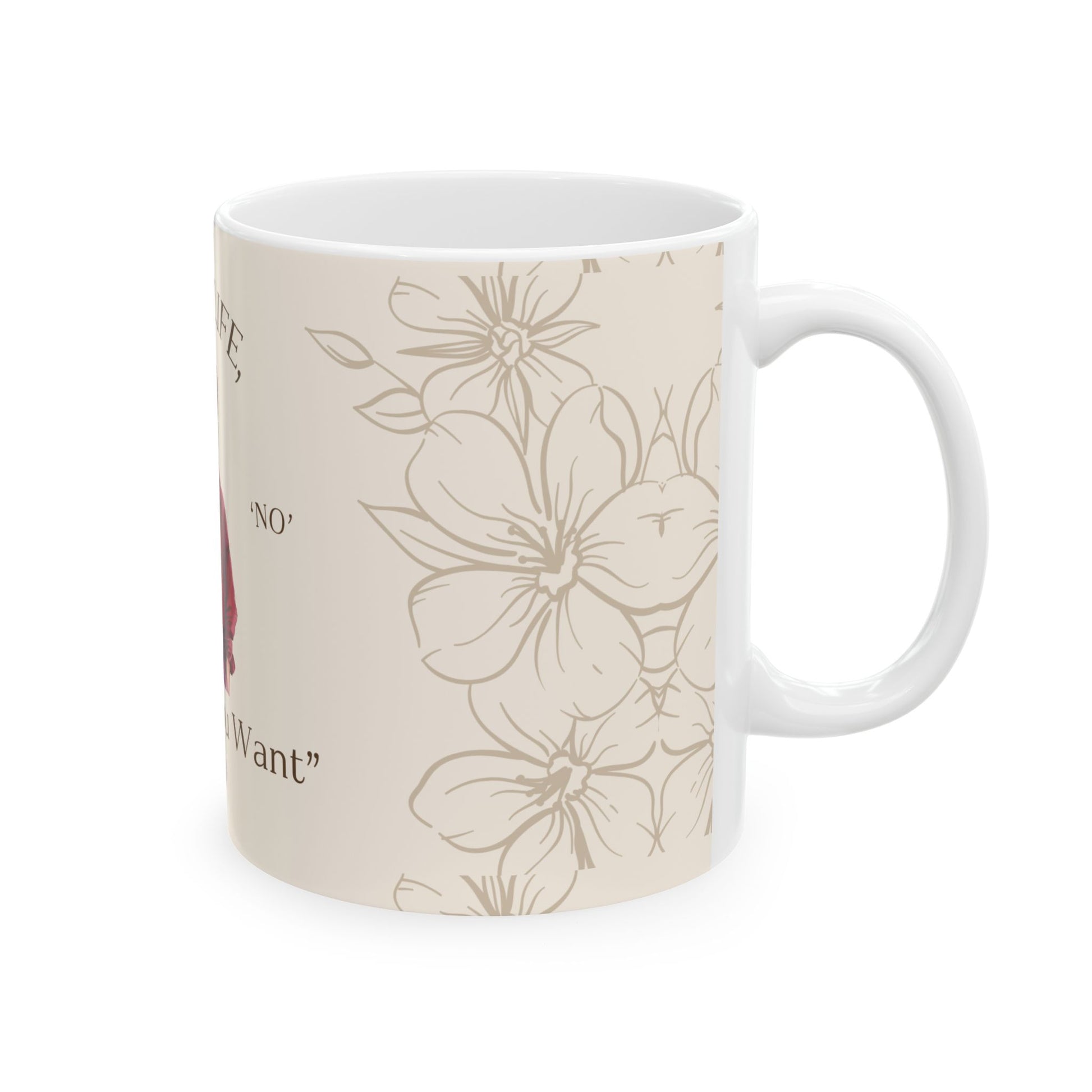 A glossy ceramic mug that holds your slow-morning mood in a stylish, cheeky way. Soft cream tones and a hand-drawn woman holding a coffee create a cozy, slightly sassy vibe: “Soft life — Try me if you want.” The artwork wraps gently around the mug with subtle floral accents, giving it a calm, boutique feel that pairs with quiet mornings, chatty brunches, or a mid-day pick-me-up. Bring a little personality to the daily ritual — this mug makes coffee feel like a moment, not a chore.