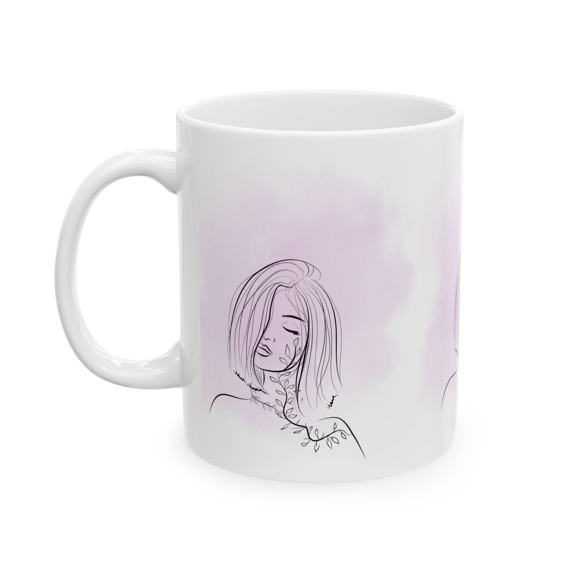 Warm, quiet mornings captured in clean lines and soft color. This ceramic mug wraps a minimal, continuous illustration around its glossy surface: a calm figure at a desk, a laptop glowing, and gentle arch shapes in muted peach and teal against a warm gray field. It reads like a pause between tasks—slow sips, focused thoughts, and a little ritual of work-at-home or studio life. The smooth C-handle sits comfortably in hand, the bright, durable print stays vivid through daily use, and the lead- and BPA-free ceramic keeps every cup safe. Use it at your desk, beside a sketchbook, or tucked into a cozy corner where small routines become steady anchors.