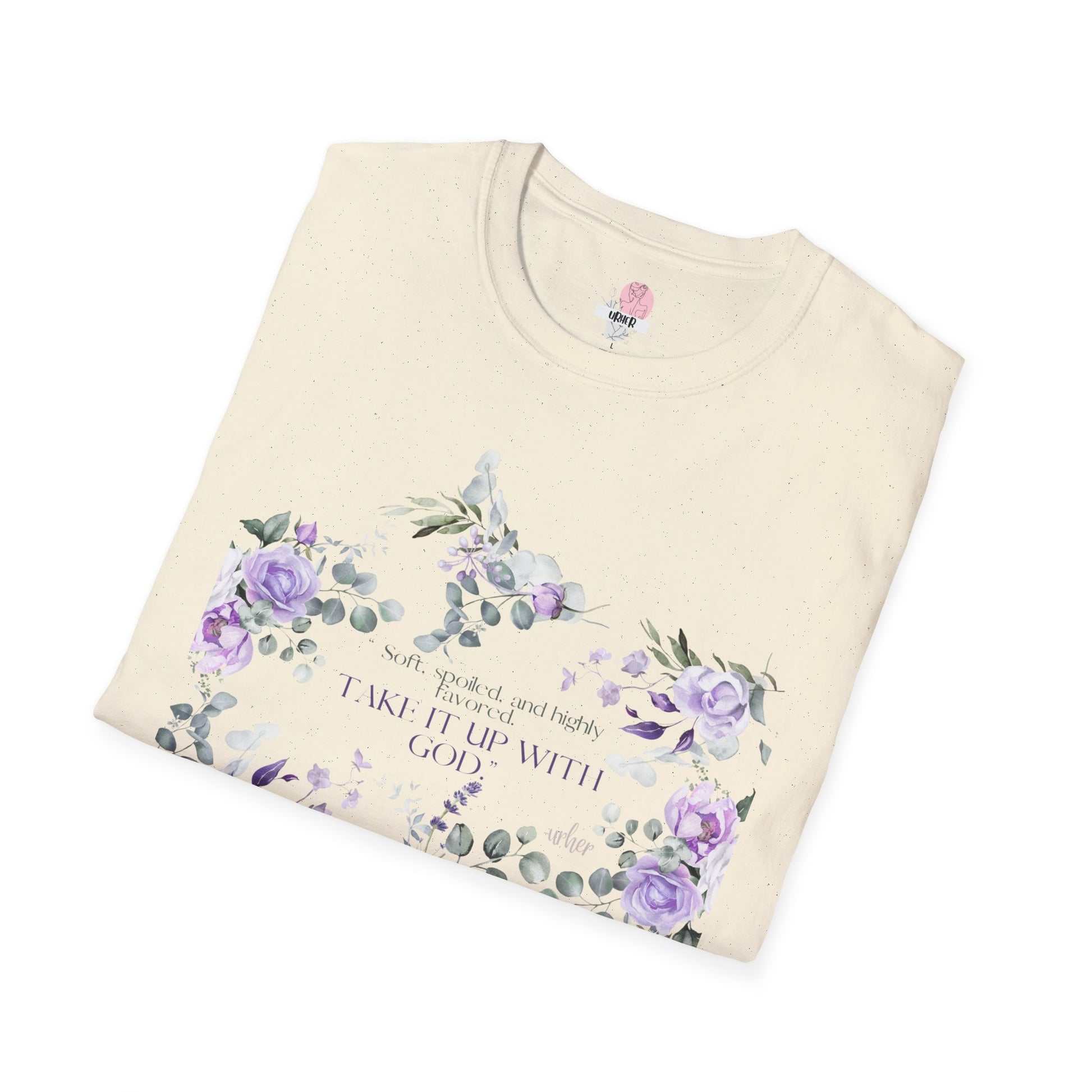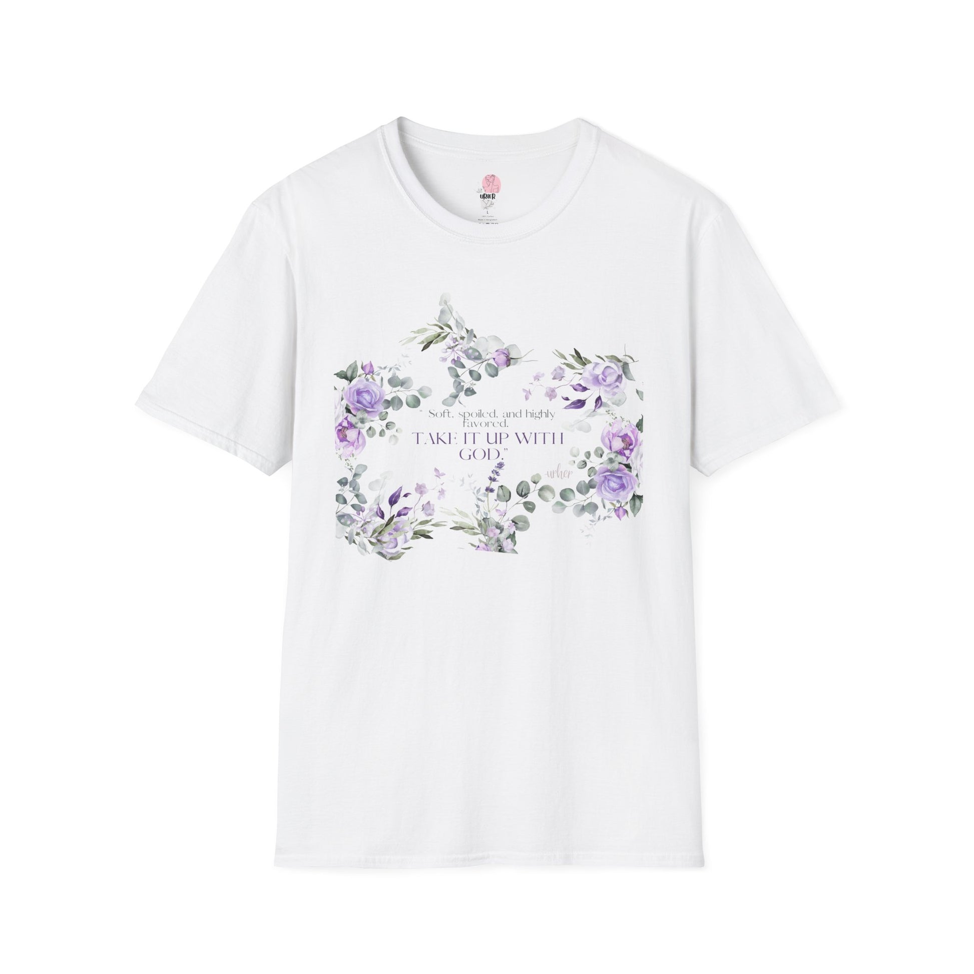 A soft, breathable tee that feels like a quiet morning in a sunlit garden. The lightweight ring-spun cotton lays gently against the skin while a delicate watercolor floral print in lavender and sage frames a subtle, uplifting message across the chest. Wear it with jeans for a weekend walk, layered under a cardigan for afternoons at the café, or as your go-to for slow, thoughtful days at home. The crew neckline and classic fit let the artwork be the focus without fuss. Every detail — from the tear-away label to the smooth, print-friendly fabric — is designed so the shirt lives comfortably in your everyday rotation and ages with gentle character.